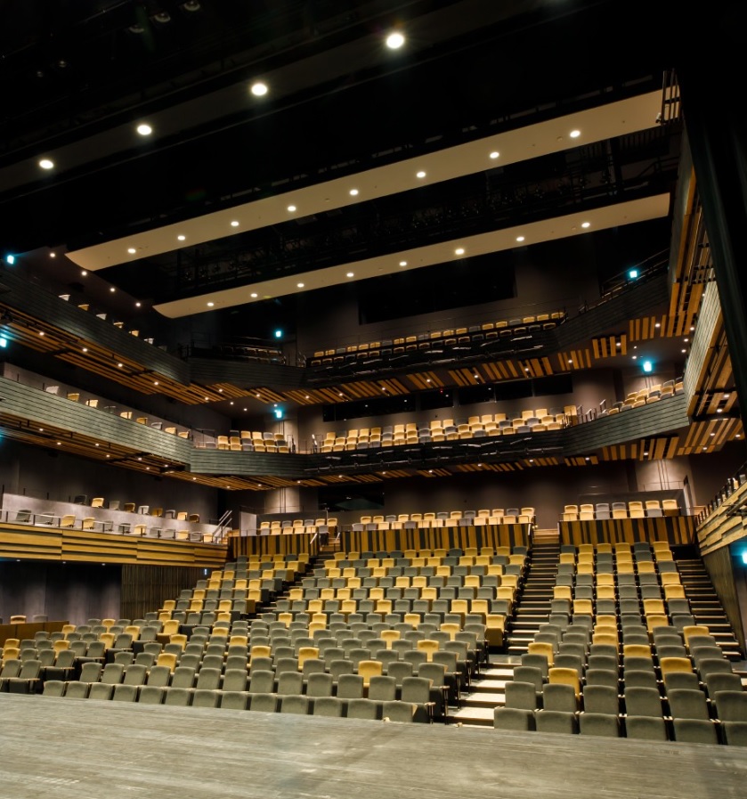 名称は「オーバード・ホール/中ホール」です。隣接する大ホール(2196席)と一体となり、日常の暮らしの中で、子どもから大人まで気軽に集える“ちょうどいい”ホールを目指します。