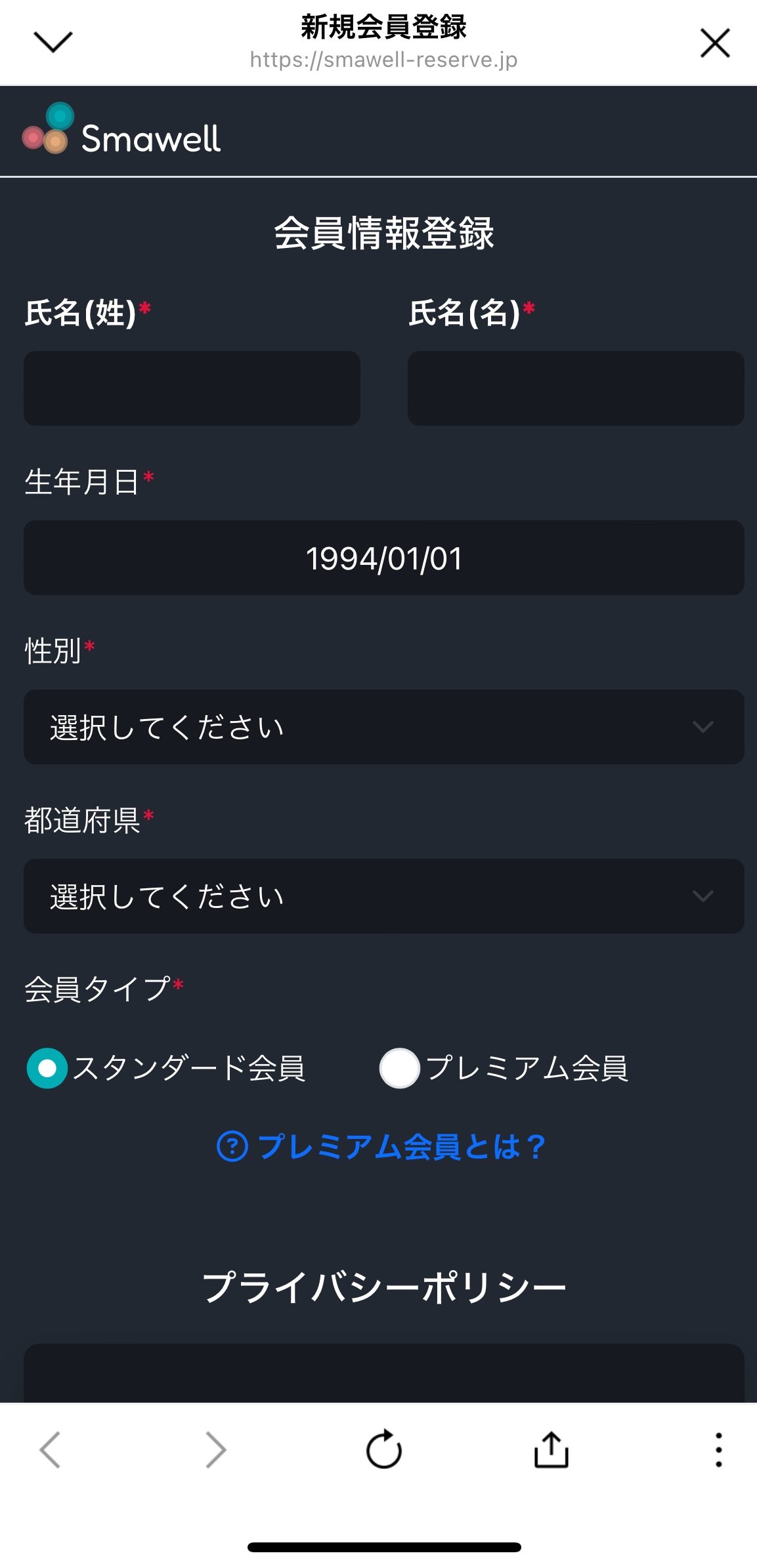 ALINEトーク画面の下部、[ご予約]をタップして会員登録を行う。
